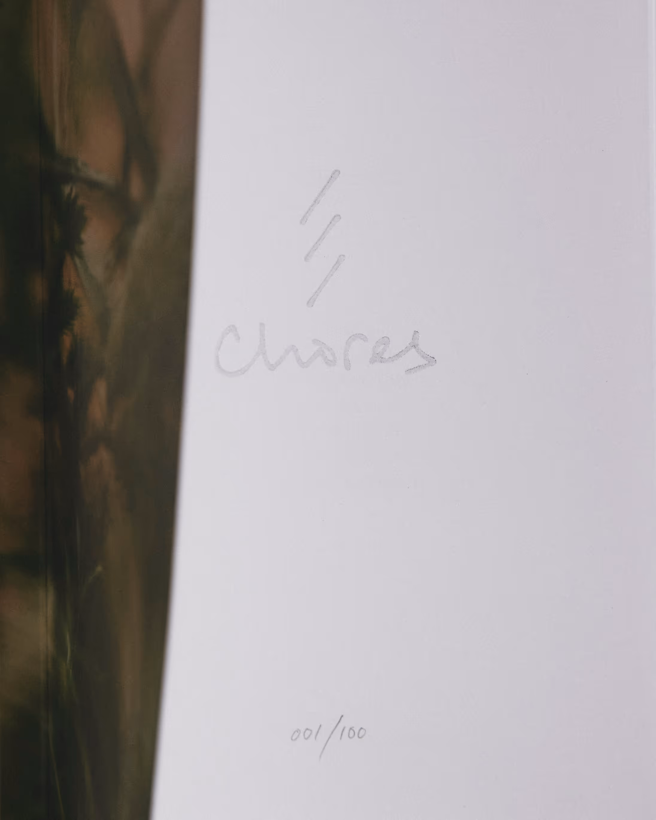 Both an art object in its own right and the only full record of this collection’s writing, this limited edition of 100 hand-stamped and numbered books reveals the stories at the heart of Chores this 2025 season.
